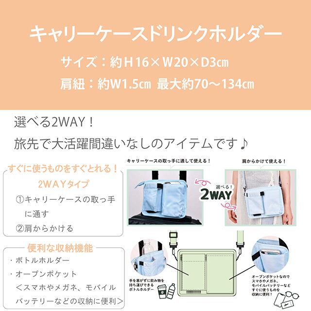 キャリーケースドリンクホルダー キャリーケース用 ボトルホルダー スーツケース用 ペットボトルホルダー ドリンクホルダー コーヒーホルダー カップホルダー 水筒 カップホルダー 海外旅行 旅行用品 トラベル用品 トラベルグッズ 2way