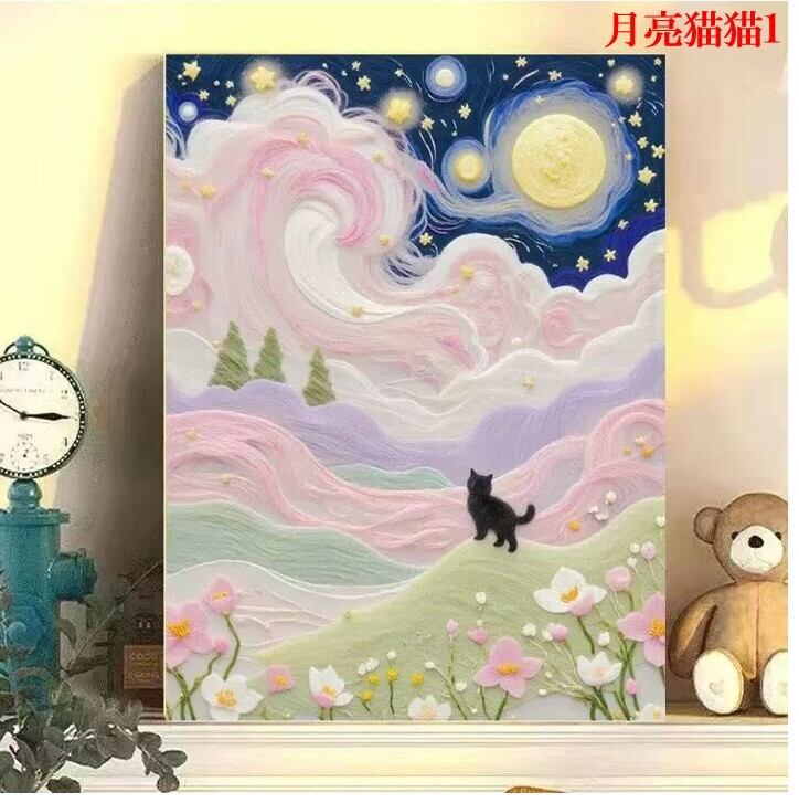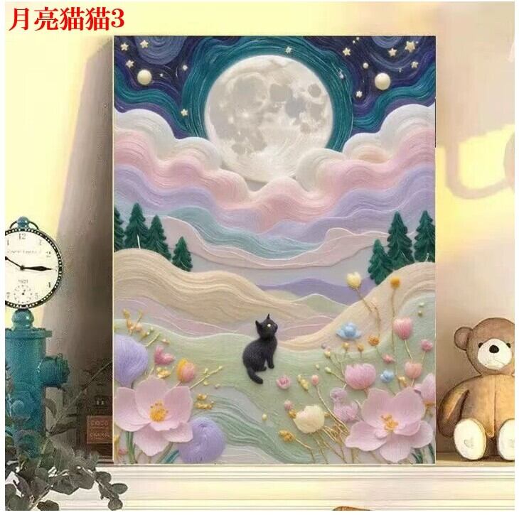 26.月亮猫猫 数字油絵 小さい 塗り絵 パズル塗り絵 数字キット塗り絵 DIY diy デジタル油絵 手芸キット 水海 絵画 絵具付 数字絵 大人の塗り絵 油絵 ペイントバイナンバー 推し 推し活 趣味 30x40cm フレームなし 花 風景 数字アート 猫 ネコ ねこ 月 雲 アニメ 漫画 | 520nail 健康美容雑貨専門店