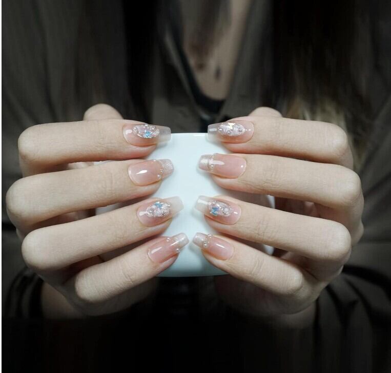 手づくりネイル:プロのネイリストが手作業で丁寧に作っています。ベースラッカー、ジェル先端、カラージェル、複雑なデザイン、ラッカーなど、完全なサロンジェルネイルプロセスに従って、爪が自然に見え、丈夫に見えるようにします