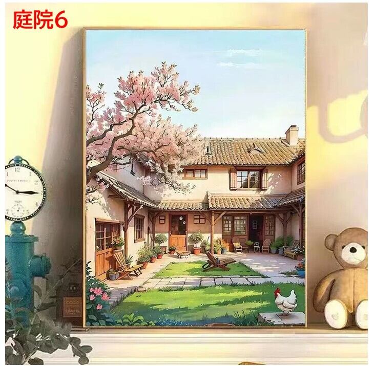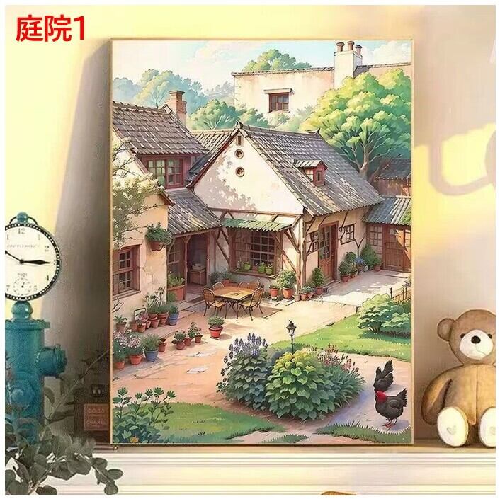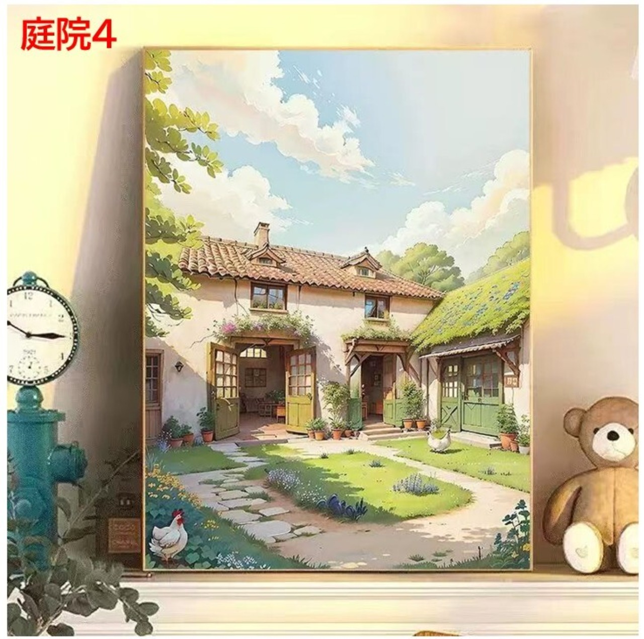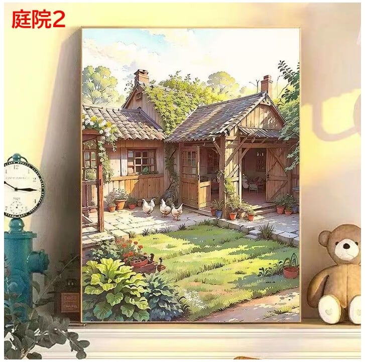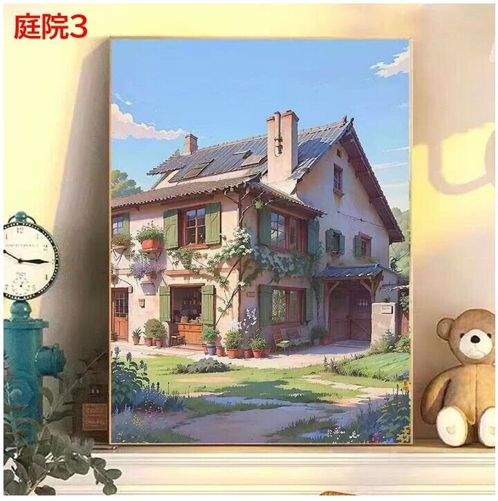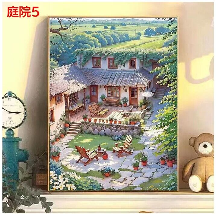 28.庭院 数字油絵 小さい 塗り絵 パズル塗り絵 数字キット塗り絵 DIY diy デジタル油絵 手芸キット 水海 絵画 絵具付 数字絵 大人の塗り絵 油絵 ペイントバイナンバー 推し 推し活 趣味 30x40cm フレームなし 風景 庭 | 520nail 健康美容雑貨専門店