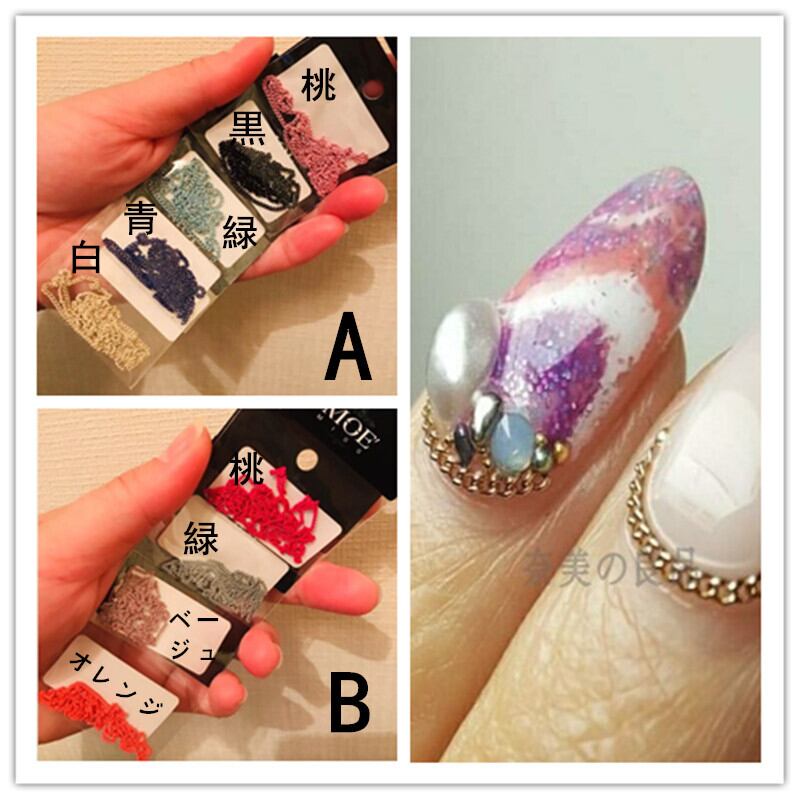 銀 ホワイト 白 ブラック 黒 ピンク レッド 赤 カラフル【カラーチェーン6色セット】チェーン ネイルアート