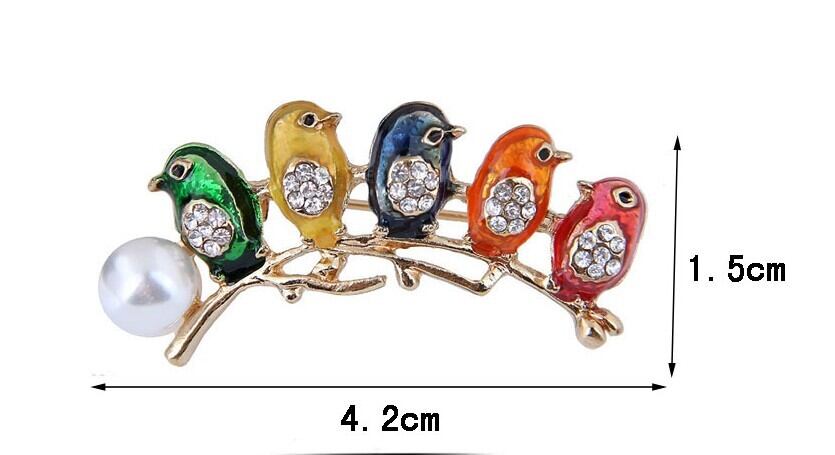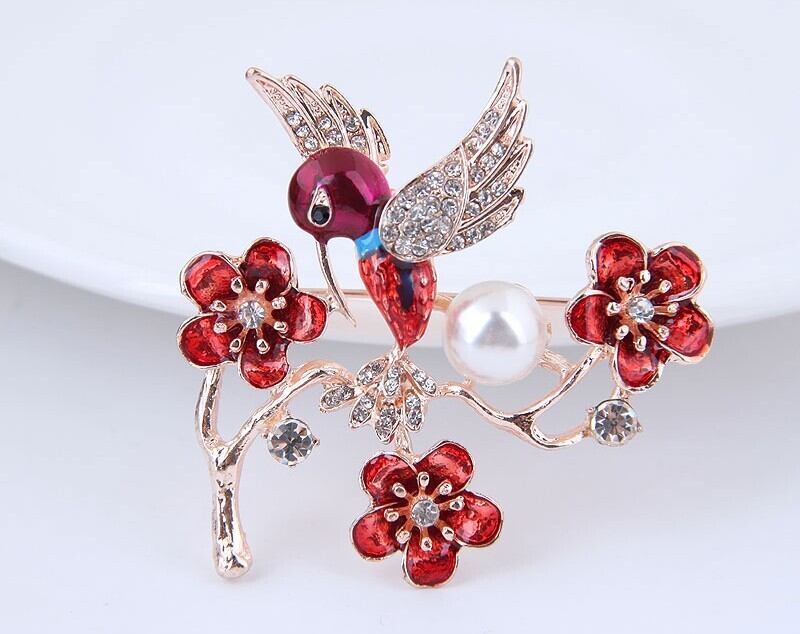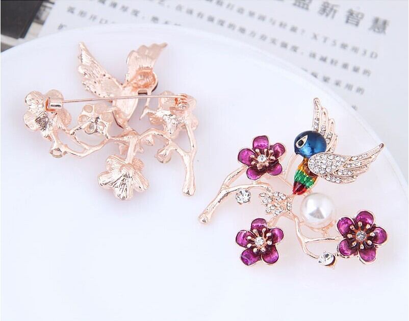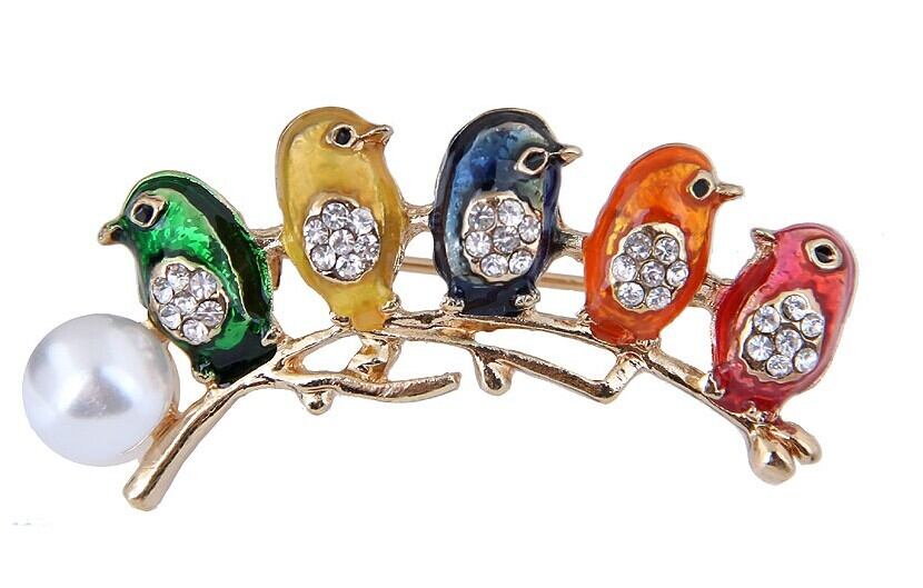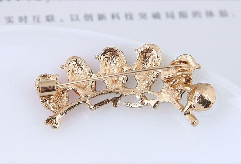 煌めくブローチ 小鳥と枝 アンティーク 動物 草木 個性的 プレゼント