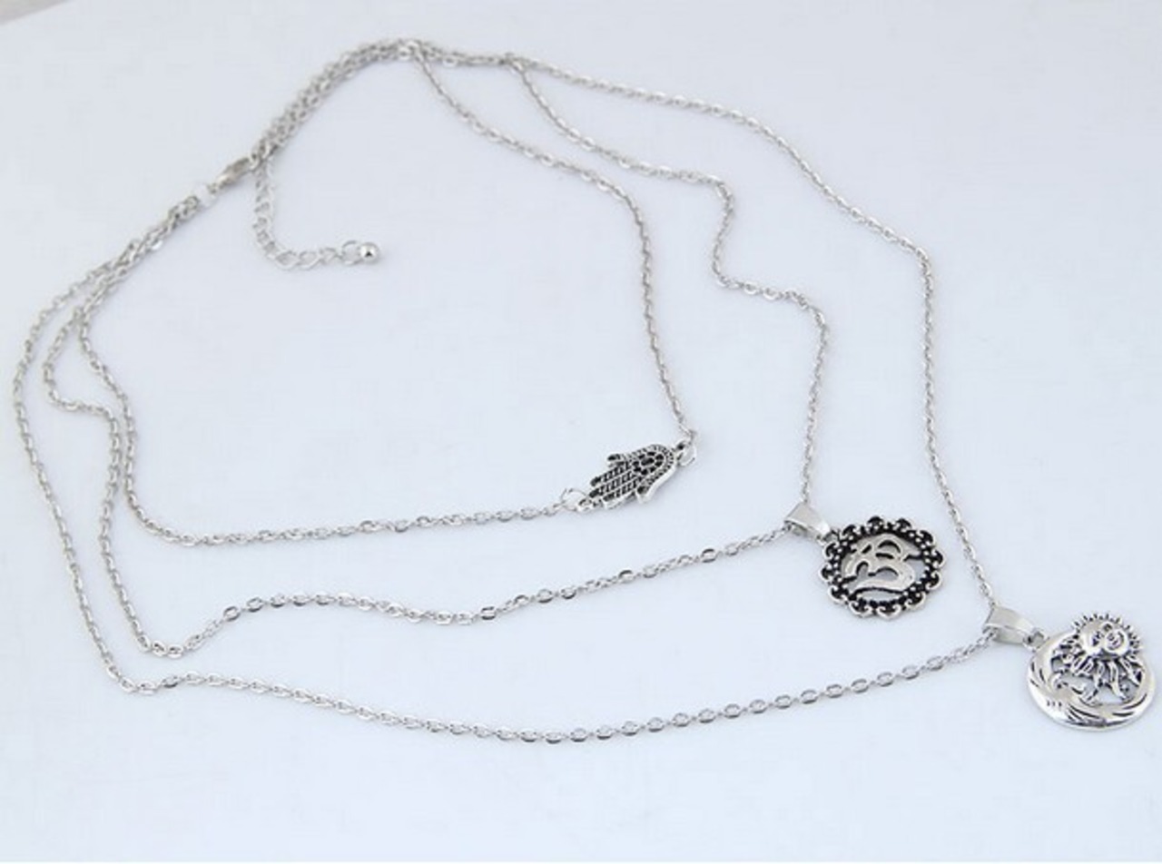 3連 ロング ネックレス ペンダント チェーン 開運 披露宴 N267
