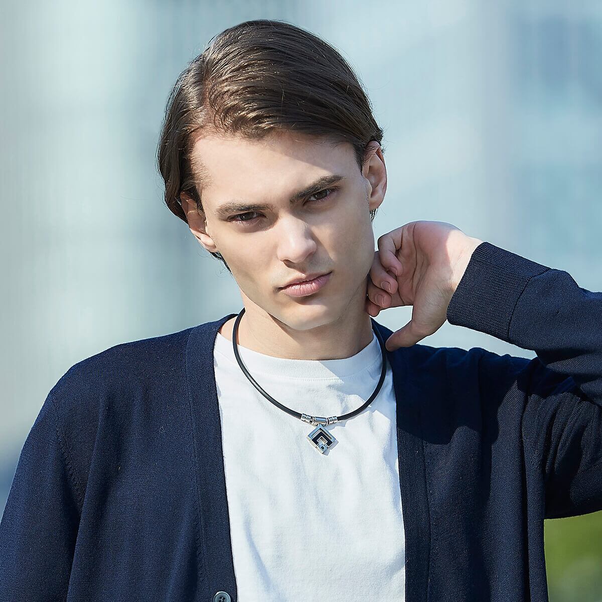 ジョイントを兼ねたトップ部分は左右どちらからでも外せる設計。ループとトップが独立した構造なので、しなやかでやわらかい着け心地で首回りにフィットします。またジョイントとトップには耐蝕性に優れた高品位のステンレス(SUS316L)を採用しています。