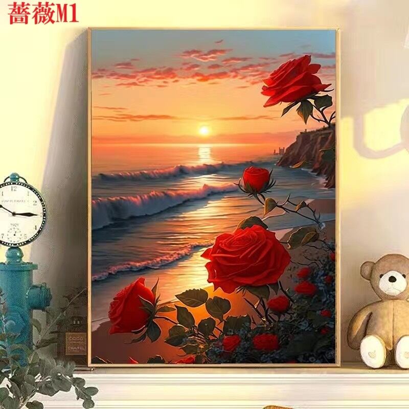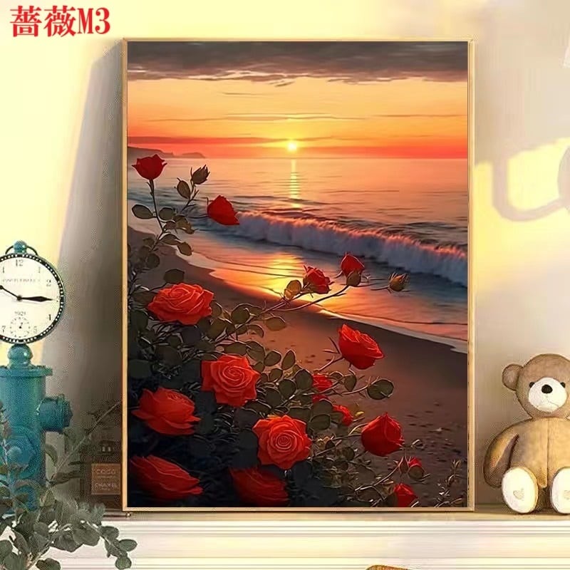 14.薔薇M ローズ シリーズ DIY 数字油絵 塗り絵 手芸キット 男 女子 花 アニメ キャラクター 景色 絵画 絵具付 数字絵 大人の塗り絵 油絵 ペイントバイナンバー