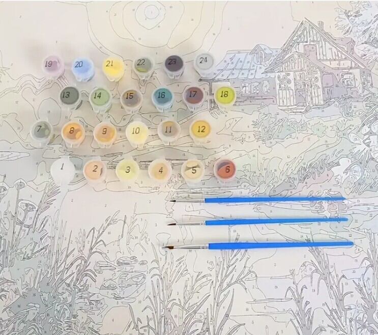 DIY 数字油絵 塗り絵 手芸キット 水海 木 景色 絵画 絵具付 数字絵 大人の塗り絵 油絵 ペイントバイナンバー ナンバーペイント 城 灯篭