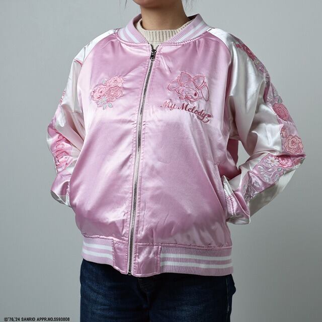 サンリオ マイメロディ レースピンクローズ スカジャン 刺繍 新作 プレゼント キャラクター グッズ ジャケット アウター メンズ レディース アニメ お土産 おみやげ 外国人 文化 伝統 ジャパン Japan上着 おしゃれ 防寒 グッズ ファッション