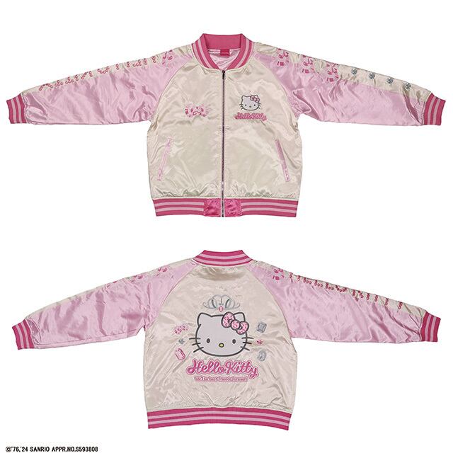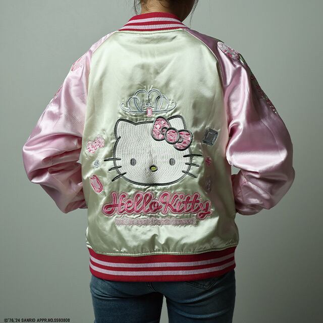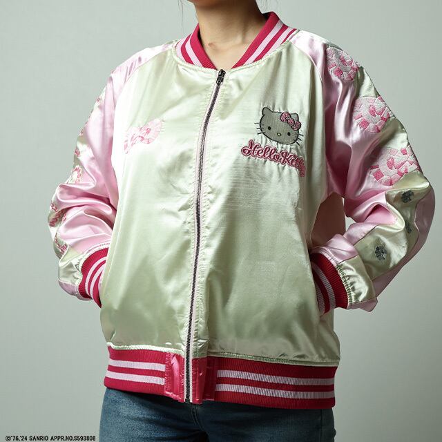 サンリオ ハローキティ ジュエリーリボン スカジャン 刺繍 新作 プレゼント キャラクター グッズ ジャケット アウター メンズ レディース アニメ お土産 おみやげ 外国人 文化 伝統 ジャパン Japan上着 おしゃれ 防寒 グッズ ファッション