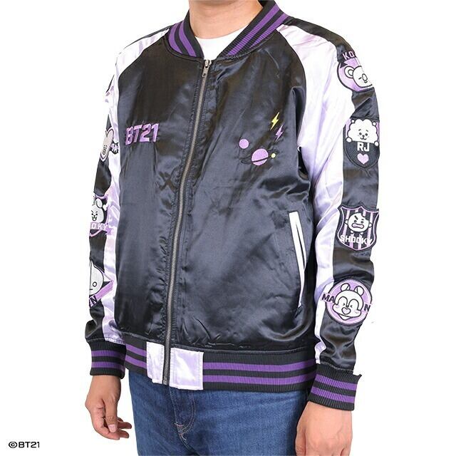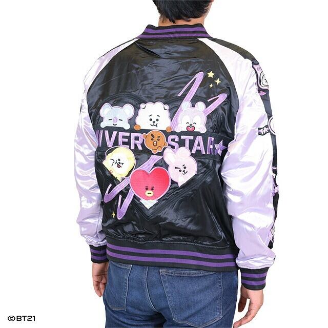 BT21 パープルハートハート スカジャン 刺繍 新作 プレゼント キャラクター グッズ ジャケット アウター メンズ レディース アニメ お土産 おみやげ 外国人 文化 伝統 ジャパン Japan上着 おしゃれ 防寒 グッズ ファッション