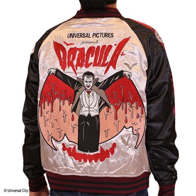 ユニバーサル バックトゥザフューチャー ドラキュラ レッドホラー スカジャン 刺繍 新作 プレゼント キャラクター グッズ ジャケット アウター メンズ レディース アニメ お土産 おみやげ 外国人 文化 伝統 ジャパン Japan上着 おしゃれ 防寒 グッズ ファッション